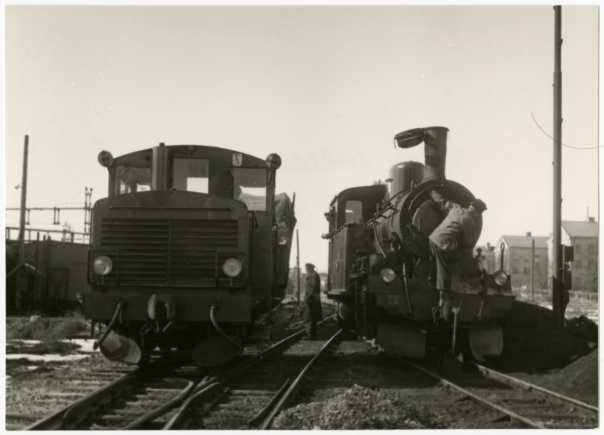 Stockholm - Rimbo Järnväg, SRJ Z4p 1 och SRJ lok 22 stående vid Uppsala östra.
