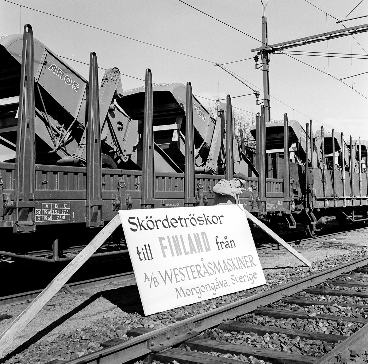 Transport av skördetröskor, Westeråsmaskiner, från Morgongåva till Finland via Haparanda. SJ Ore