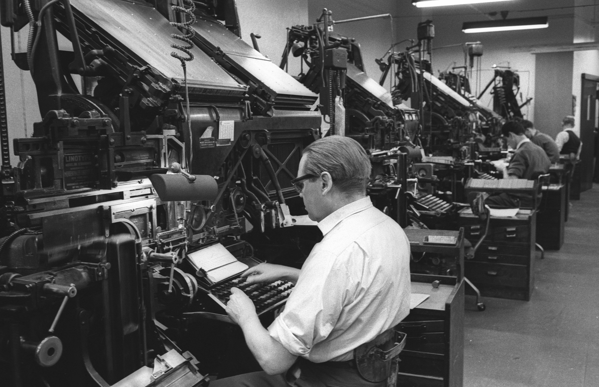 Statens Järnvägar SJ-nytt trycks, sätteriet.