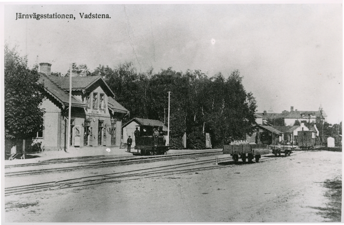 Vadstena järnvägsstation med Fågelsta - Vadstena - Ödeshögs Järnväg, FVÖJ lok 2 "Gustav Vasa"