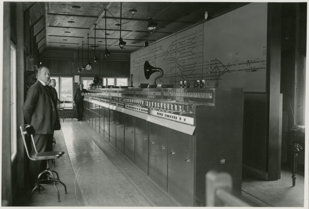 Interiörbild från det då nyuppförda ställverkshuset vid Stockholm Centralstation.
