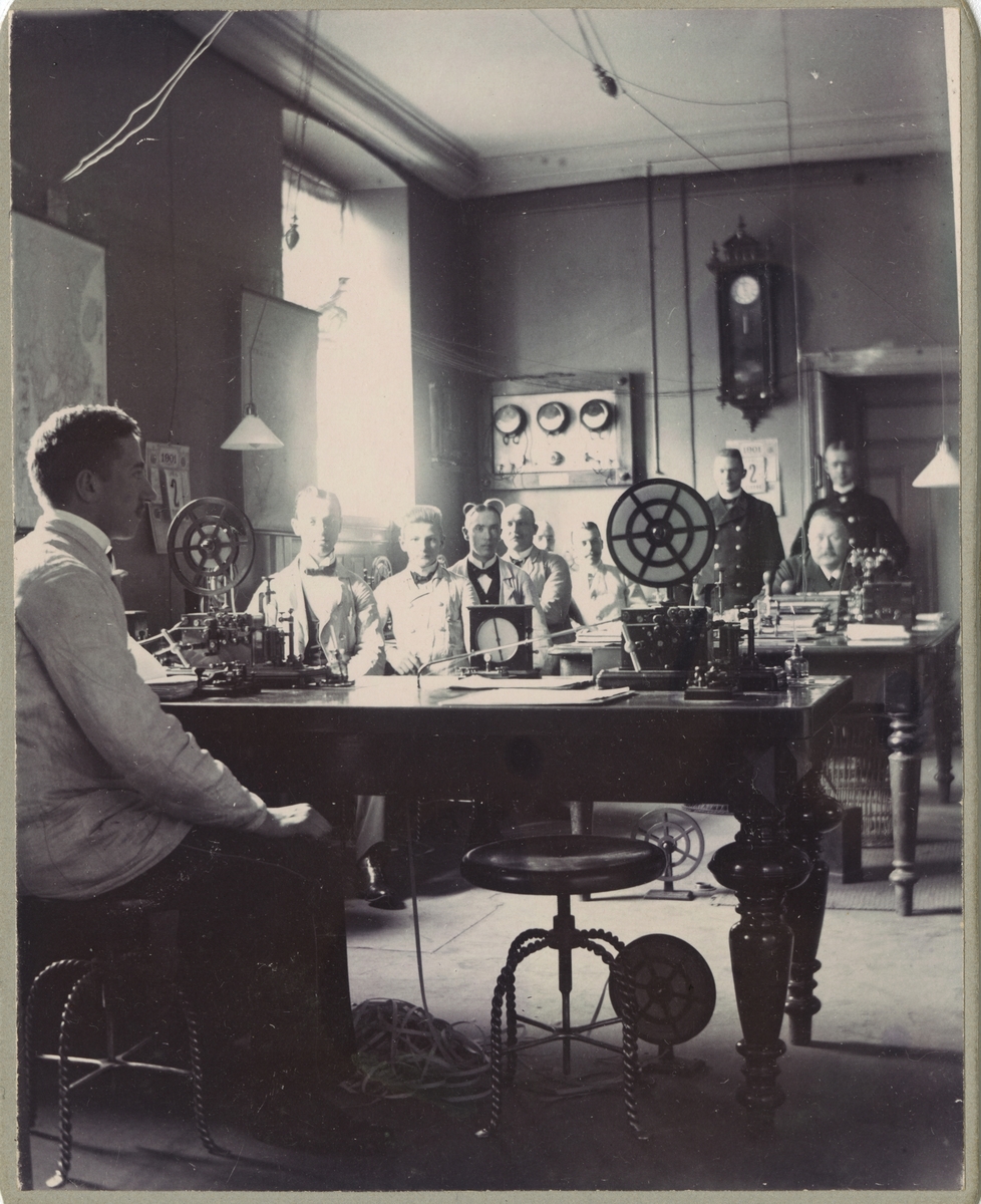 Provisorisk telegrafexpedition på Stockholms Centralstation.