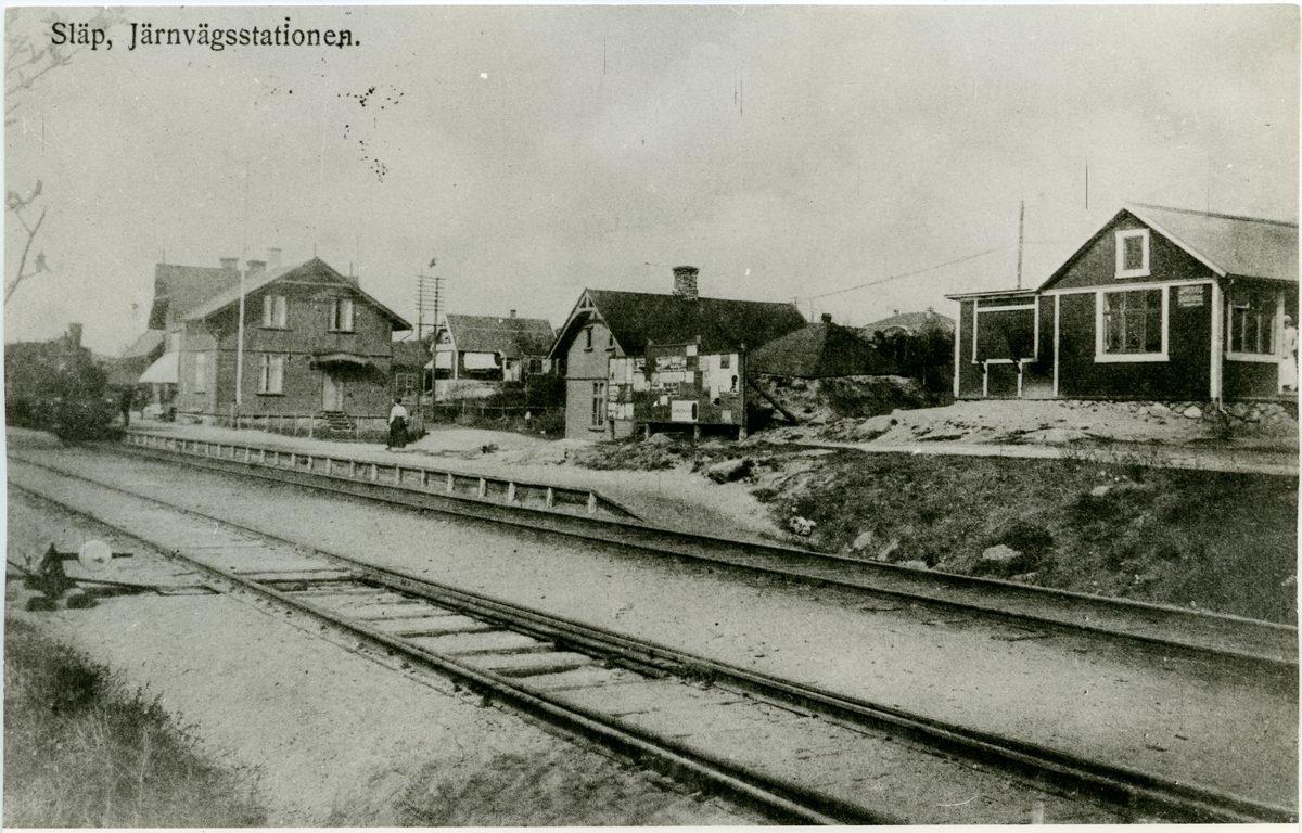 Släps station som bytte namn 1953 till Särö Station. Göteborg Särö Järnväg, GSJ Lok. Observera annonstavlan mitt i bild.