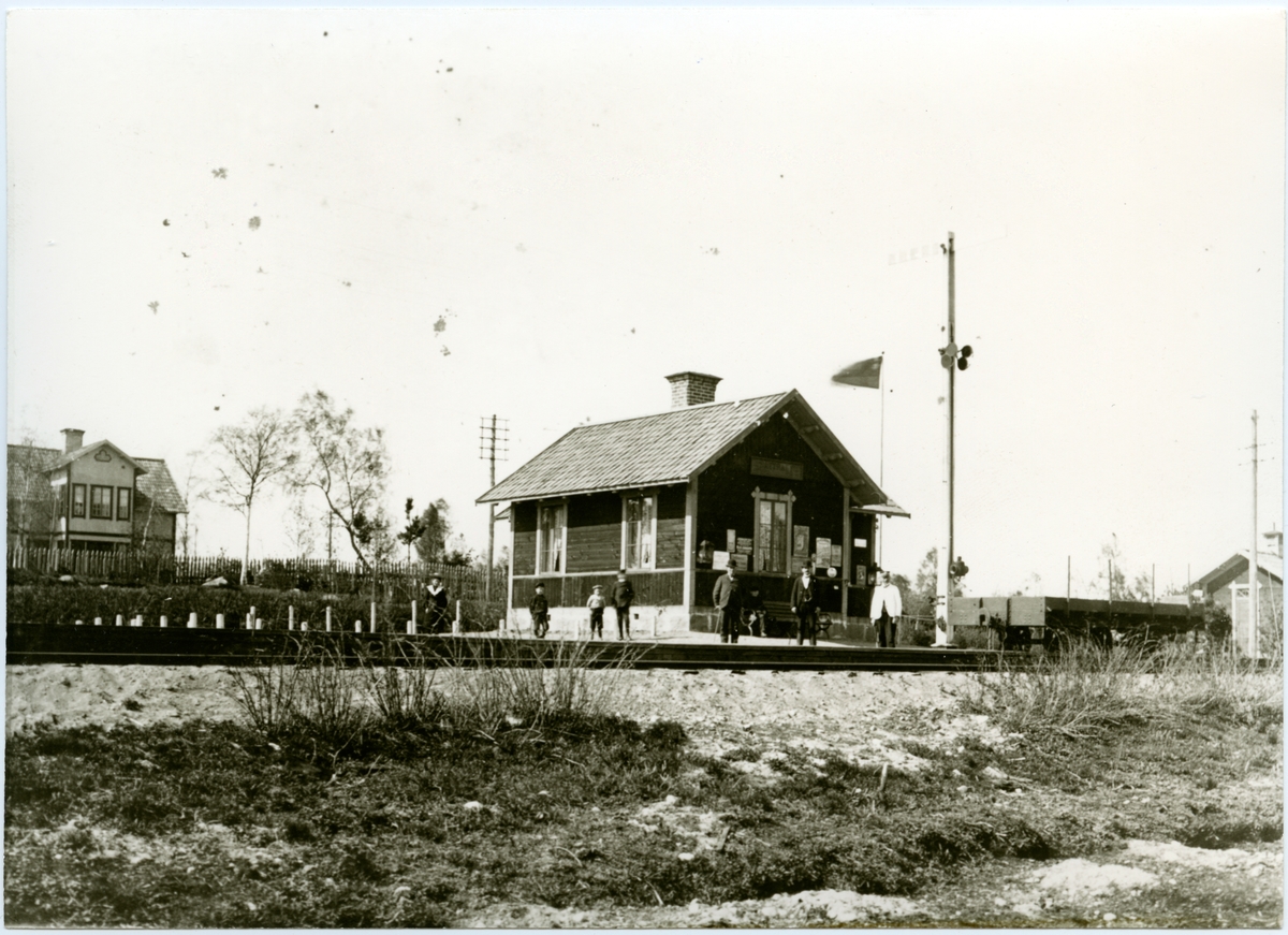 Vy över Sättraby station. Rimbo-Sunds Järnväg, RSJ.