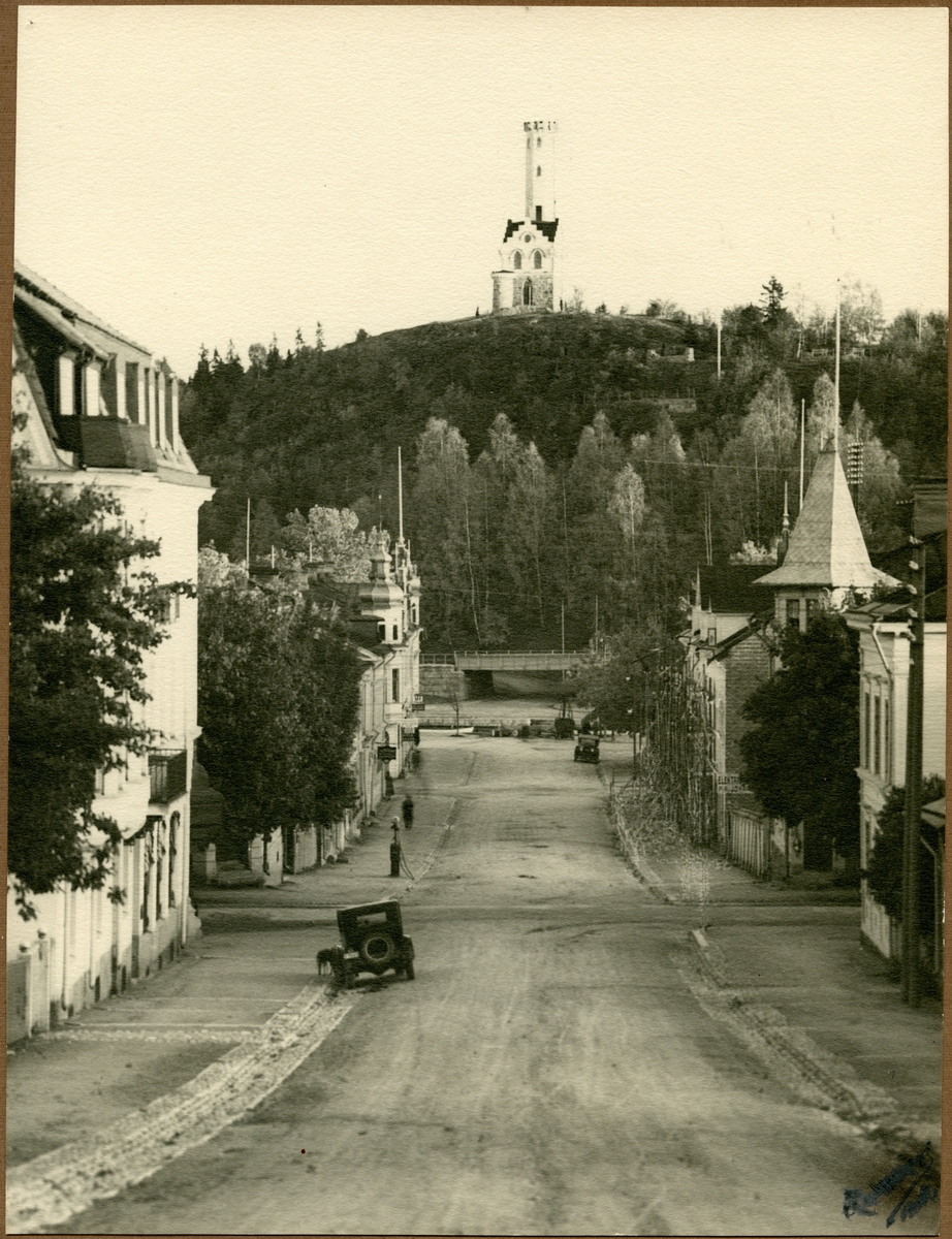 Dalagatan i Söderhamn. I bakgrunden syns utsiktstornet Oscarsborg som invigdes 1895 och är 23 meter högt.