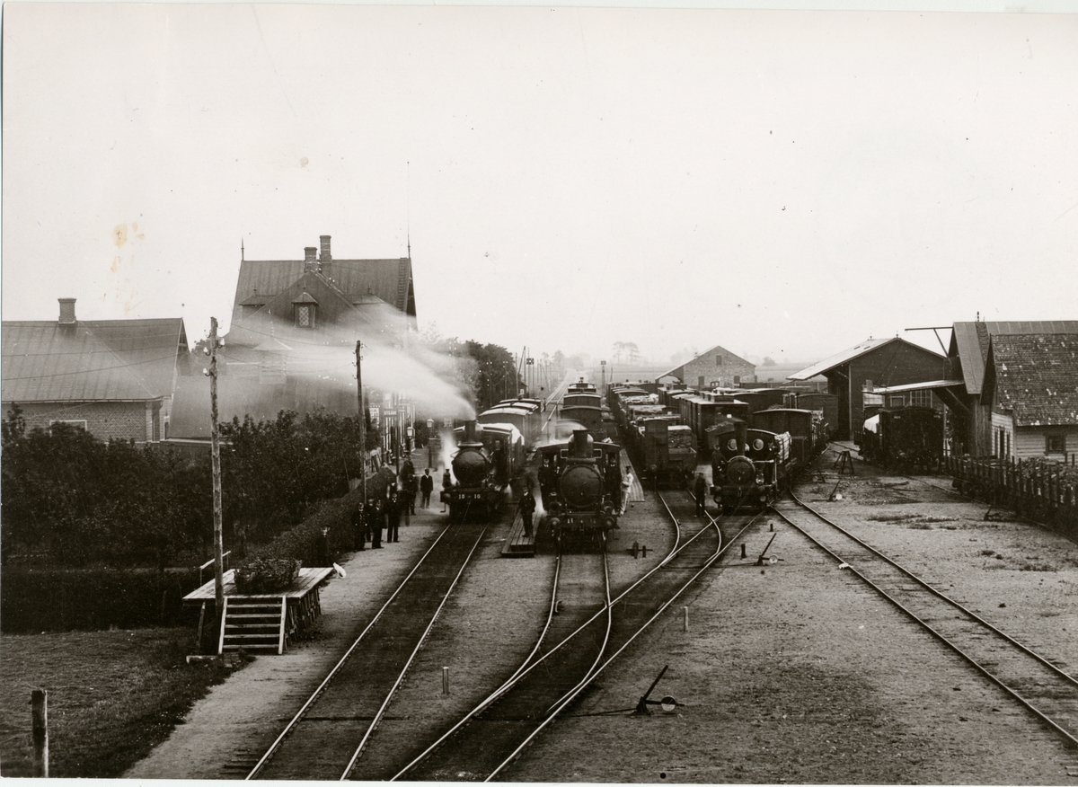 Klippan station med, Helsingborgs-Hässleholms Järnväg, HHJ Lok 10 "Mörarp" och HHJ Lok 11 "Qvidinge".