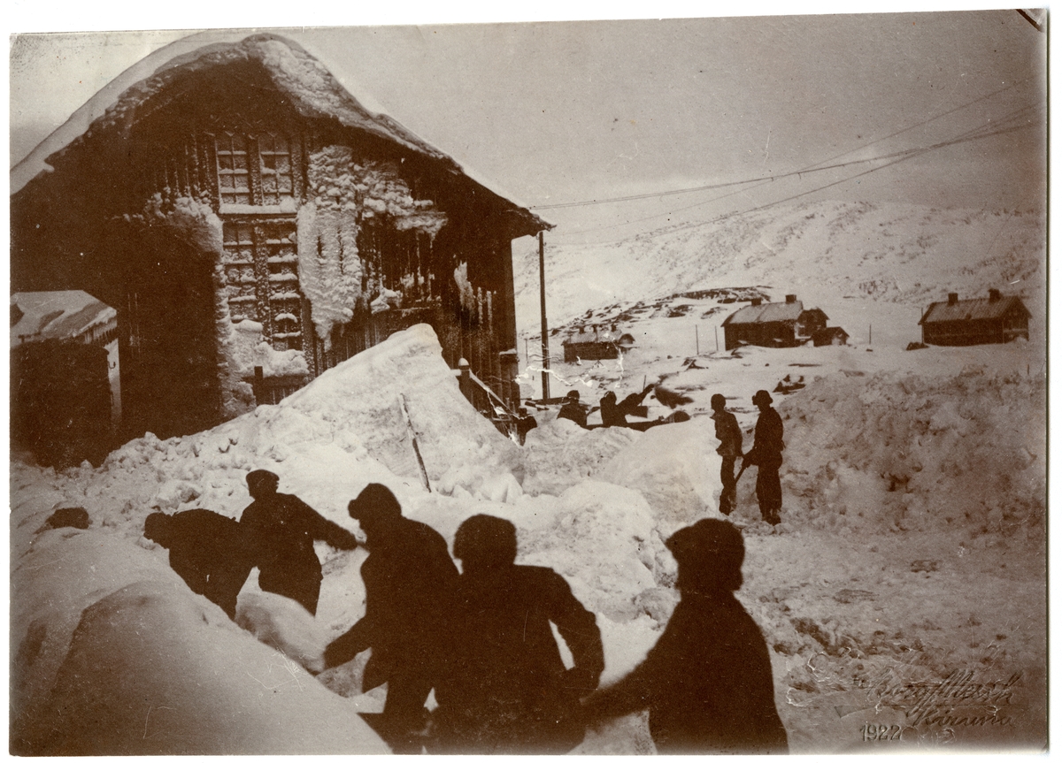 Snöskottning vid godsmagasinspåret i Riksgränsen.