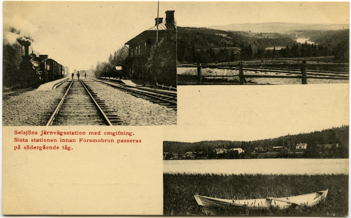 Selsjöns Järnvägsstation med omgivning. Sista stationen innan Forsmobron passeras på södergående tåg.