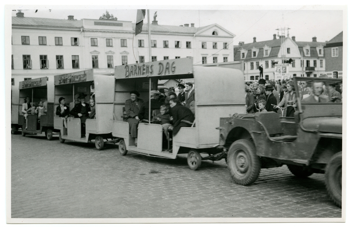 Barnens dag i Kristianstad. Landsvägståget som gick varje halvtimme mellan Stora Torg och festplatsen i Kristianstad.