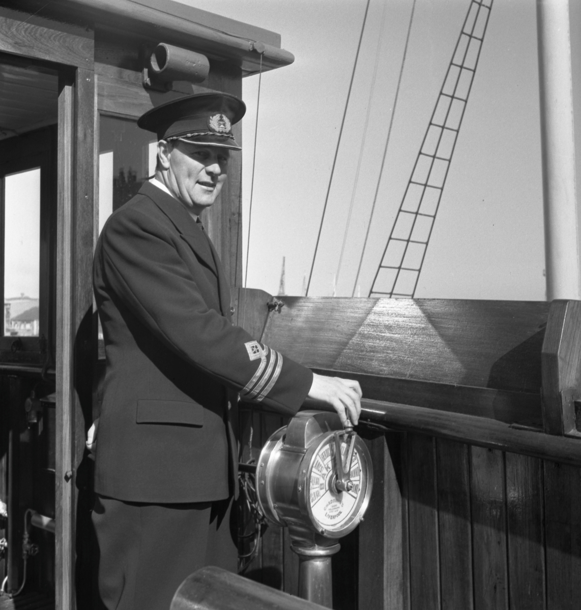 Kapten Bånge på ångfartyget S/S Örnen i Malmö. Öresundsbolaget.