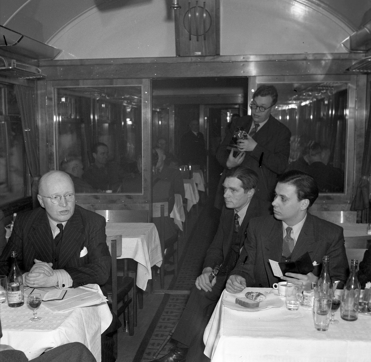 Byråchef Lindqvist, redaktör Lånström och redaktör Ollén på invigningsresa. Den första resan med eldrift på sträckan Långsele-Boden.