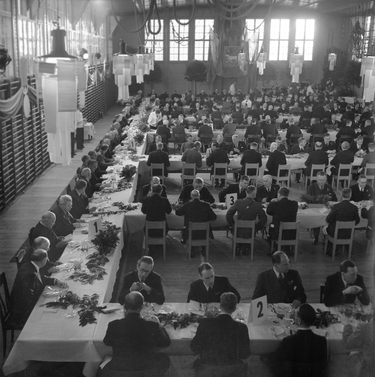 Middag i Norrbotten regementes gymnastiksal i Boden i samband med den första resan med eldrift på sträckan Långsele-Boden.