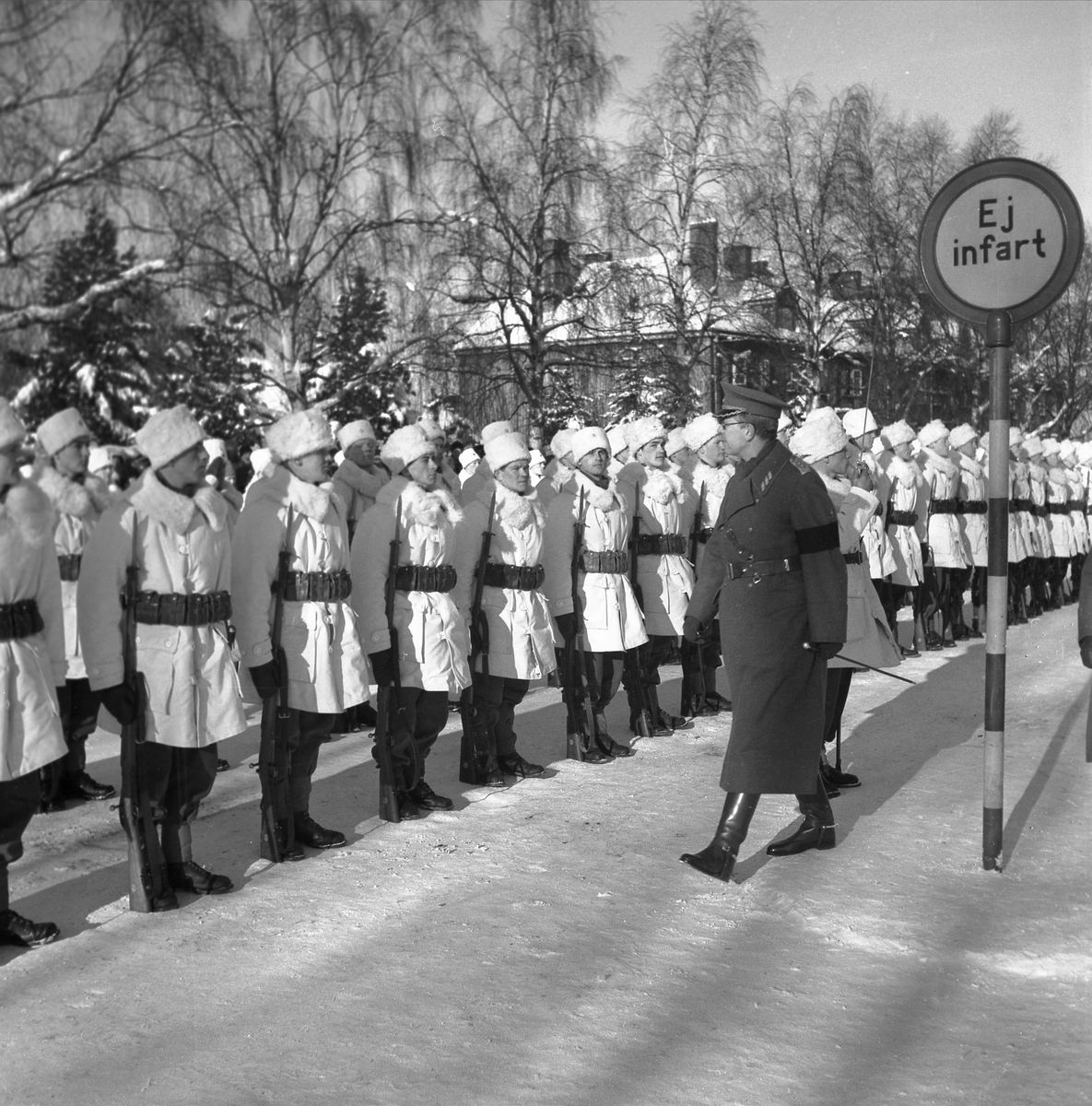 Norrbottens regemente paraderar för Kronprins Gustaf Adolf i Boden i samband med invigningen av eldrift på sträckan Långsele-Boden.