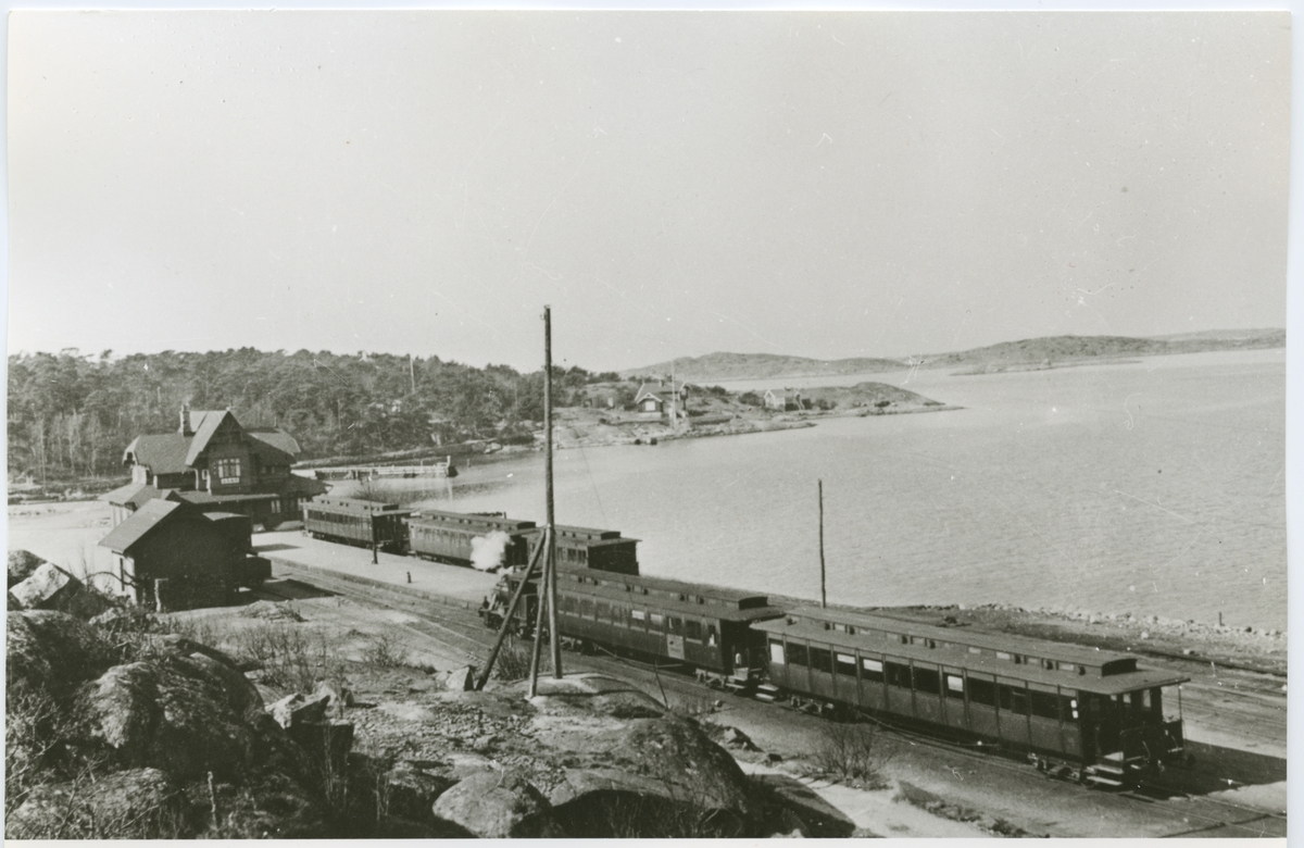 Växling på Särö-Vesterskog station GSJ Göteborg-Särö Järnväg. Loket skall föra den kvarstående boggivagnen (CDF0) till Göteborg. (Stationen heter nu Göteborg Säröbanan)