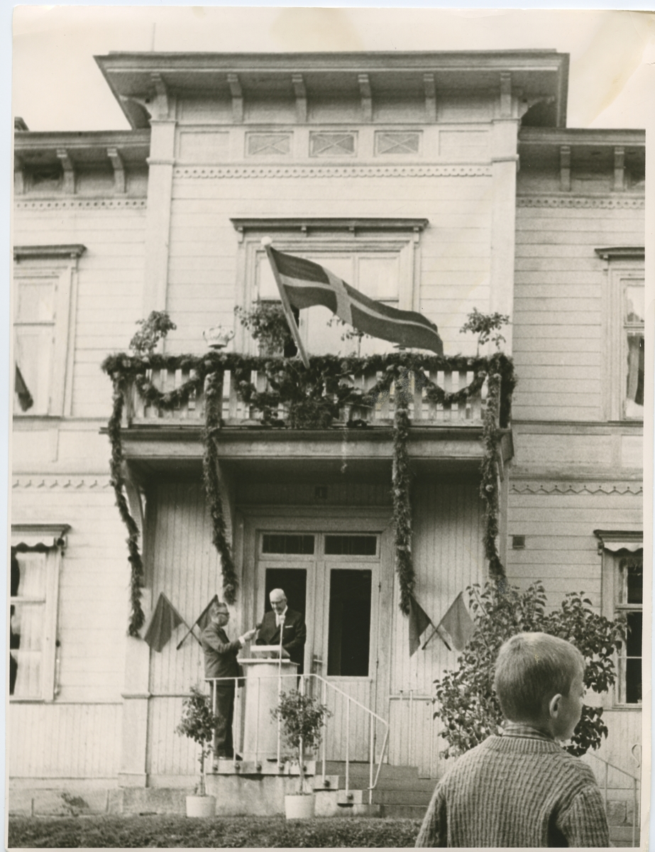 Landshövding Lingman talar vid Söderhamns Järnvägsstation på 100- årsdagen 1961- 09-15.