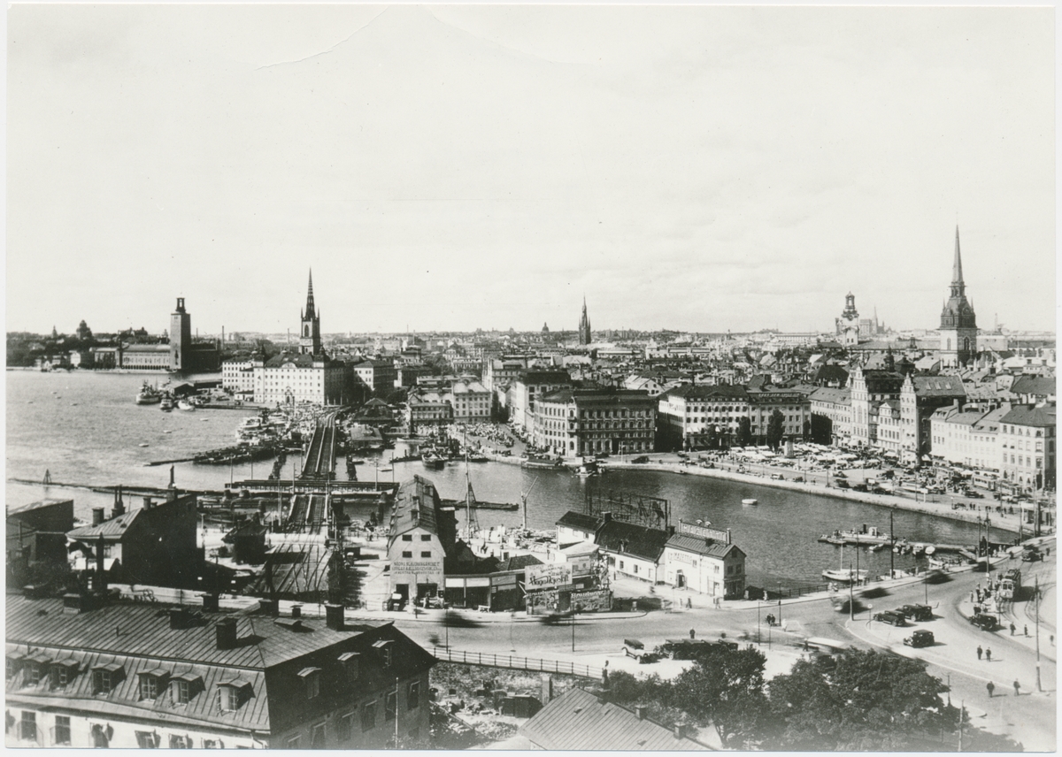 Utsikt från Katarinahissen, 1930, innan Slussbygget påbörjats och hissen rivits.