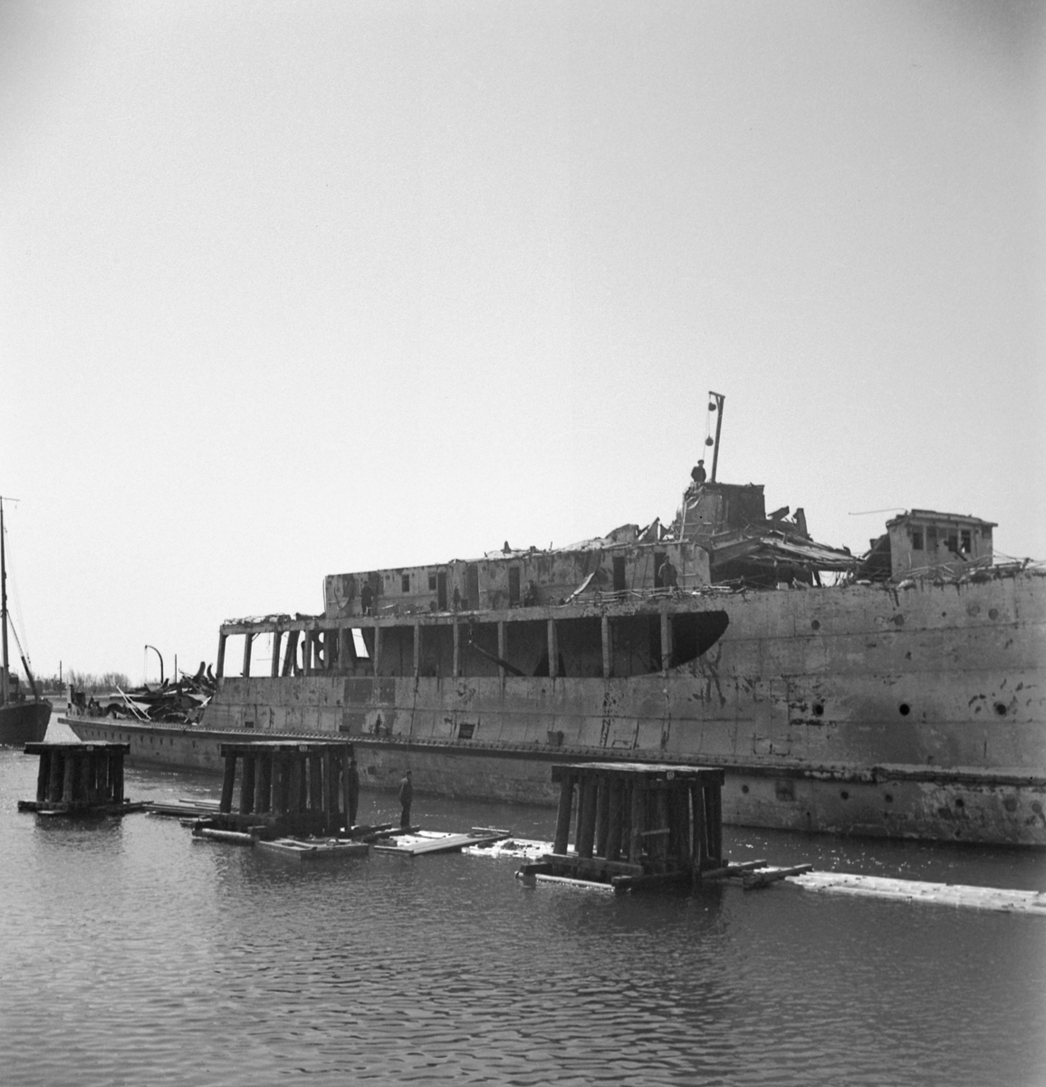 Den förlista isbrytande färjan Starke bogseras efter bärgning genom Falsterbokanalen på väg till Kockums i Malmö.