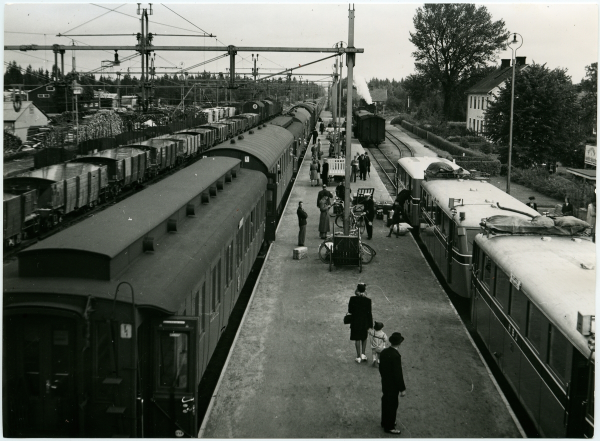 Vislanda bangård. Normalspårsbangården till vänster, smalspåriga bangården till höger.