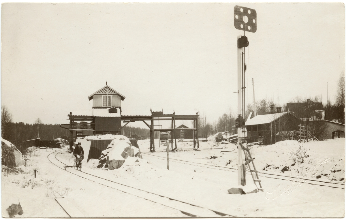 Dala - Hälsinglands Järnvägs bangård i Voxna. Det vänstra spåret tillhör Voxna - Lobonäs Järnväg, WLJ.
