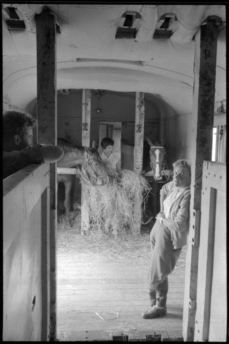 Djurtransport. Värdefulla hästar transporterades ofta i specialinredda vagnar tillsammans med deras vårdare.
