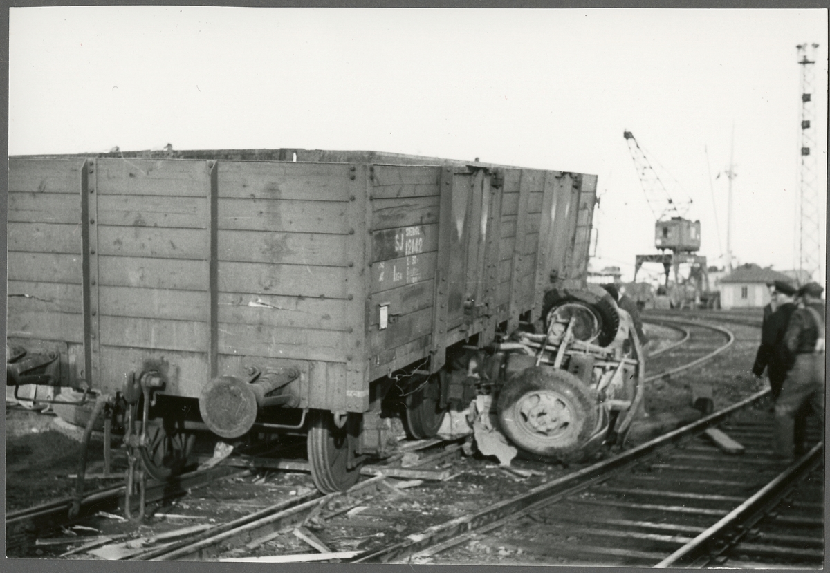 Bilden tagen i samband med en olycka vid Gävle hamn, Fredriksskans, då en godsvagn kolliderade med en lastbil.