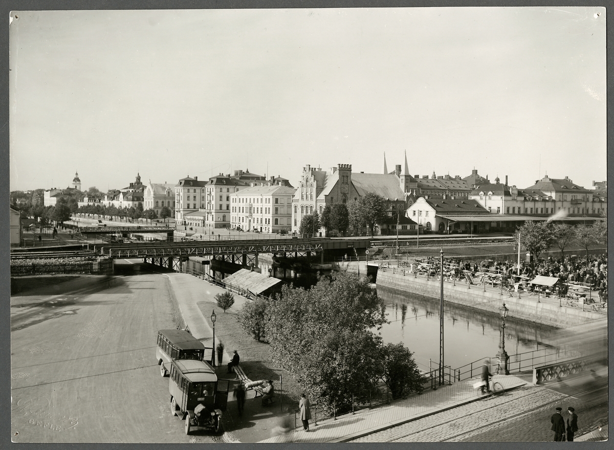 Vy över Gävle. 2 bussar antagligen GMC Buss vi ser på bilden.