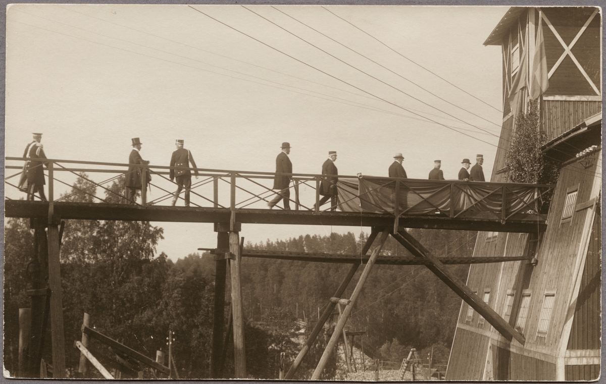 Kungligt besök av Kung Gustaf V, vid Långbans gruvområde, Värmland.