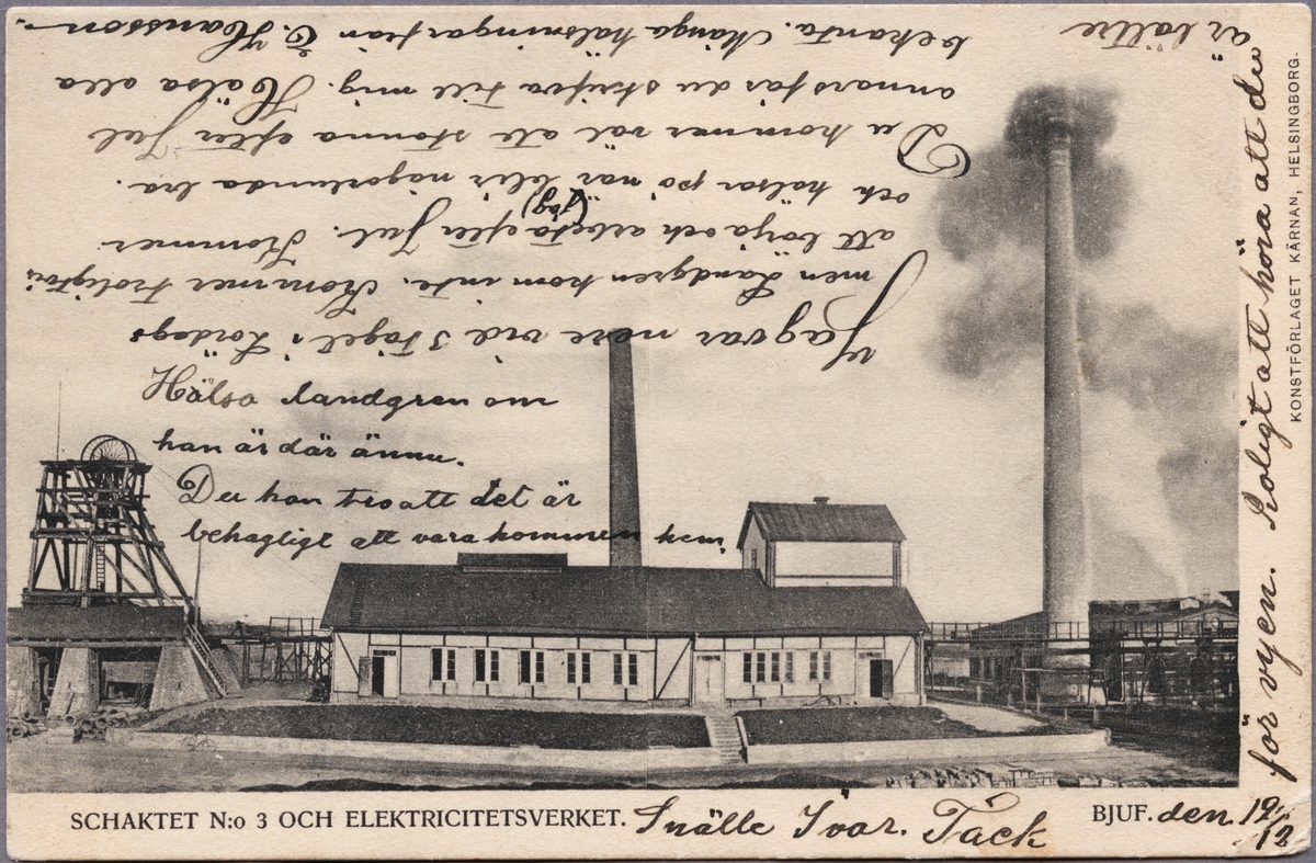 Pumphus och elverk vid schakt nummer 3, Bjuvs gruva.