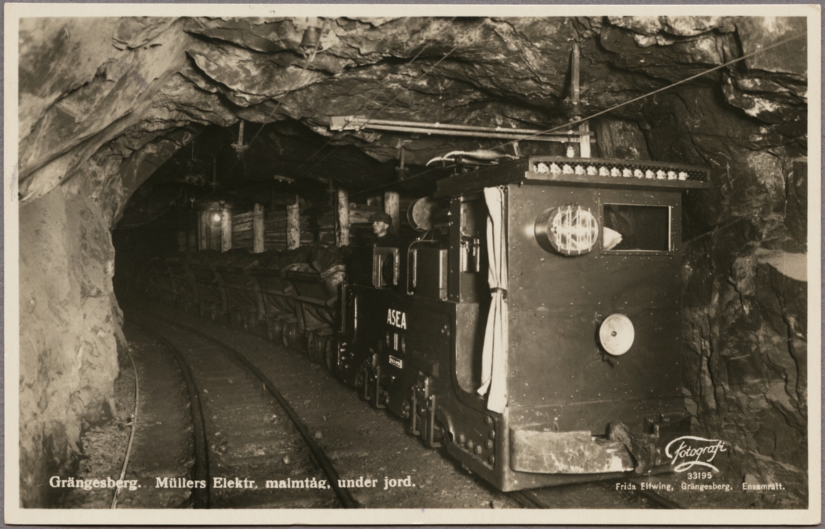 Elektriska järnvägen i Müllers gruvschakt, Grängesberg. Malmtåg.
