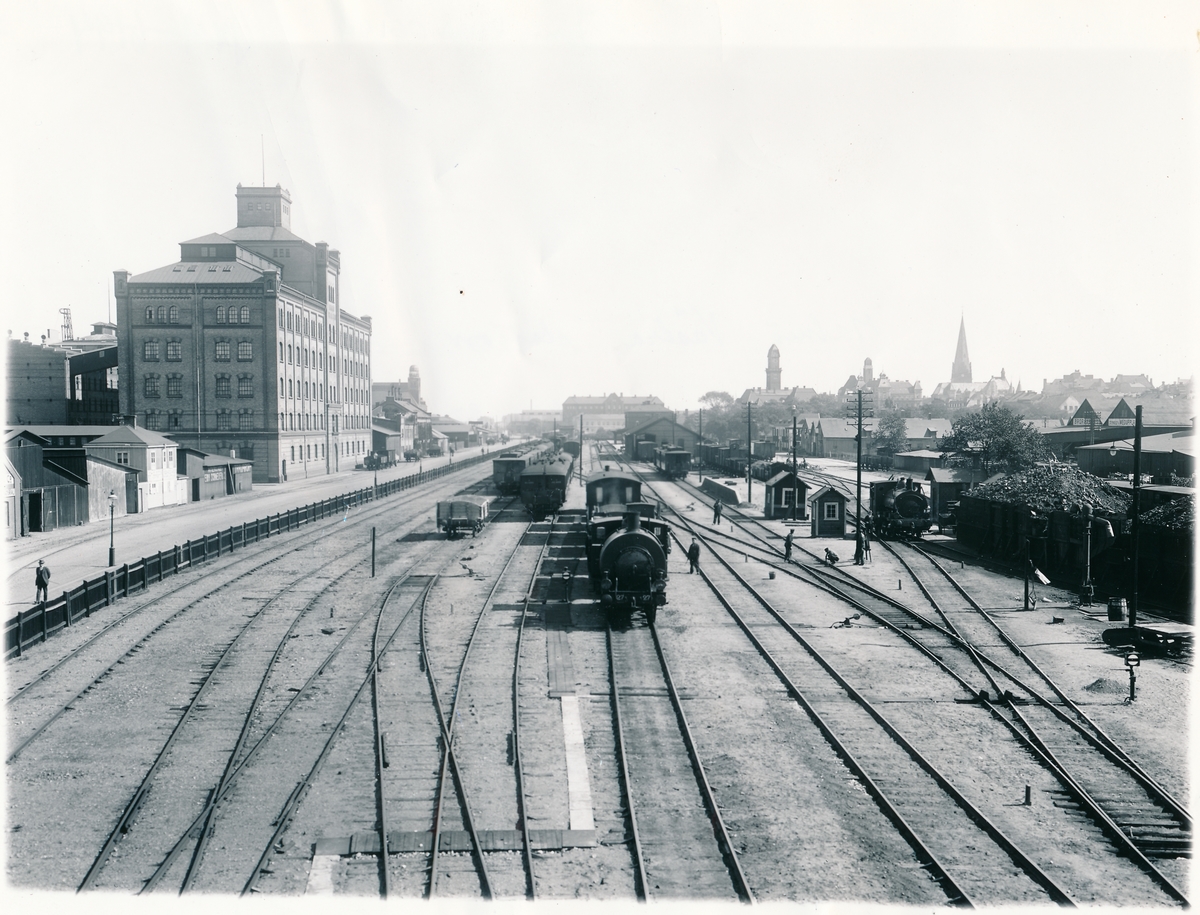 Titel: Malmö - Ystads Järnväg, MYJ lok 27 och MYJ lok 28 vid Malmö Västra Station.