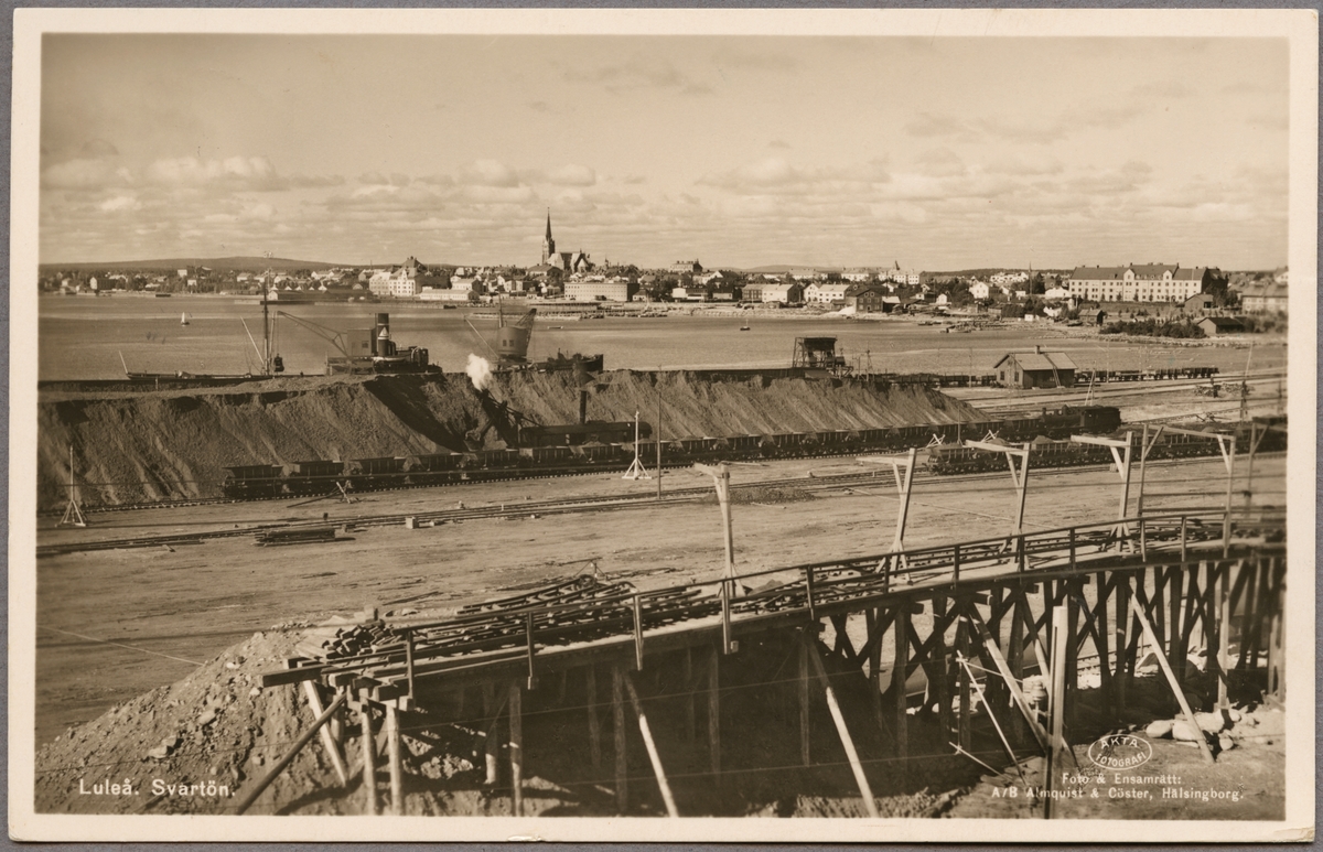Malmlastning med ångdriven kran på Svartön i Luleå.