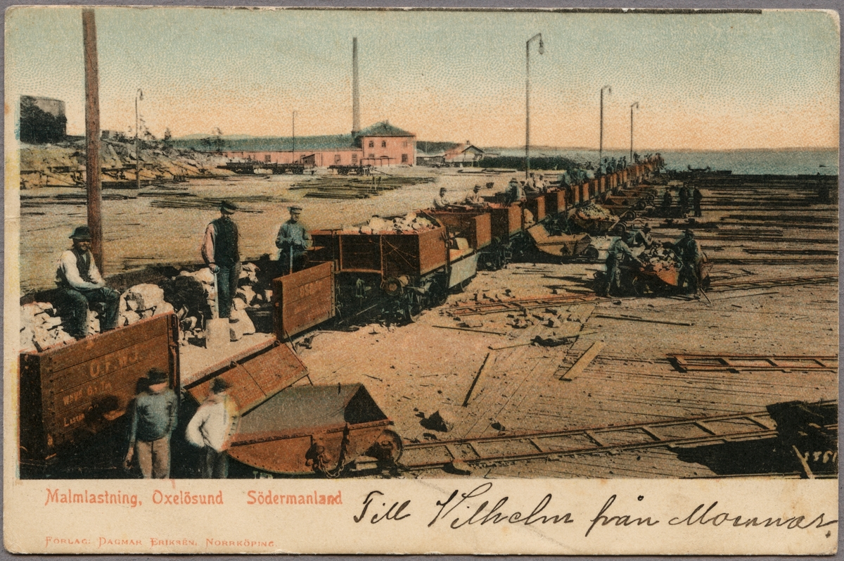 Lastning av malm vid Oxelösund Flen Västmanlands Järnväg, OFWJ, i Oxelösunds hamn.