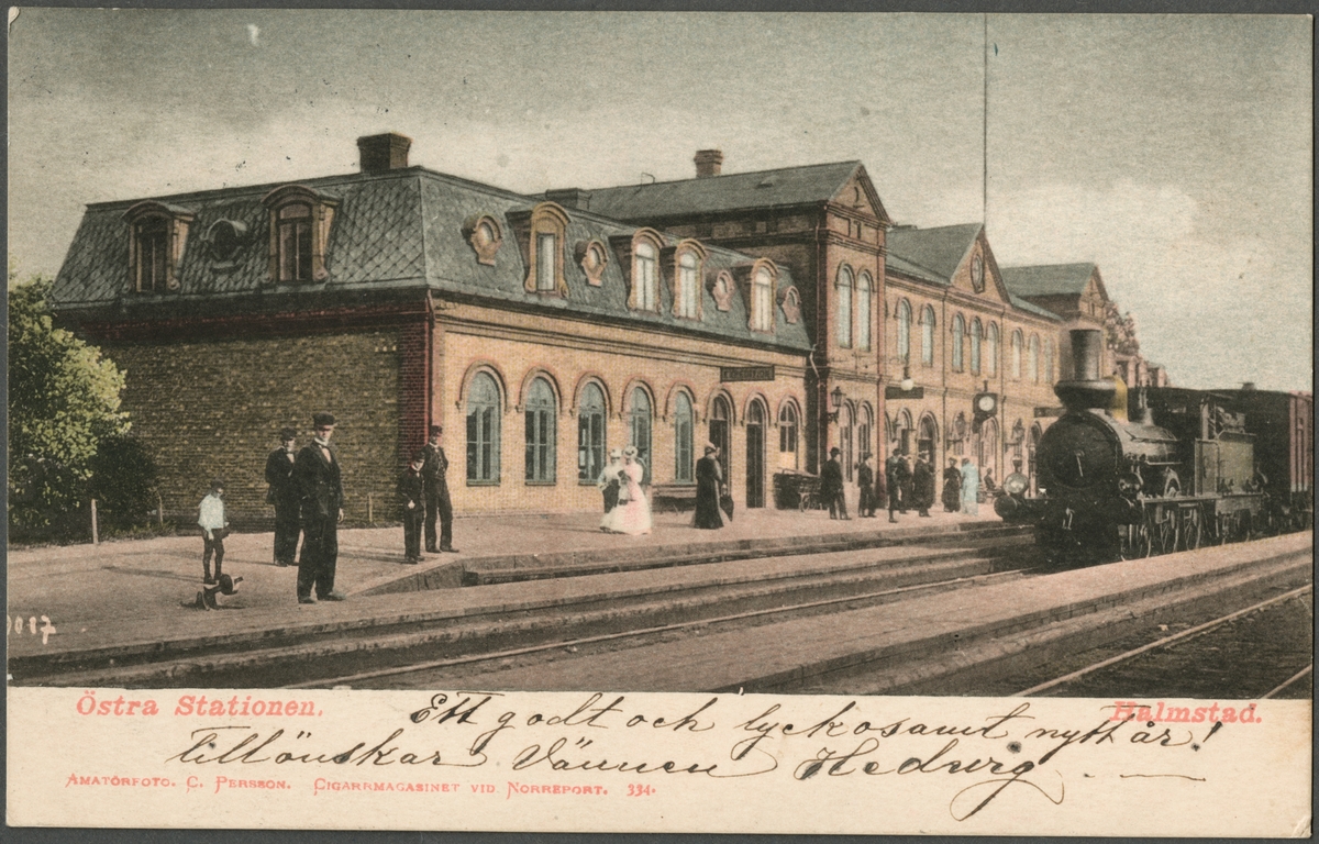 Halmstad central på handkolorerat vykort.