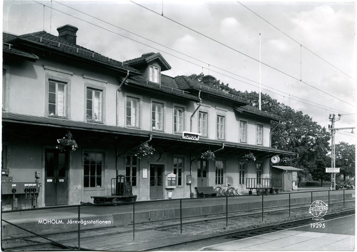 Andra stationshuset ,1873, ett större tvåvånings stenhus. Tillbyggdes 1891 i och med MKJs anslutning. Före tillbyggnaden utgjorde det modell för Stehag och Karlskoga stationshus.