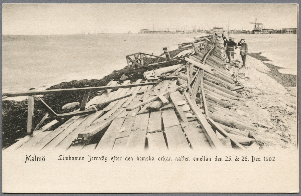 Malmö - Limhamn Järnväg efter en stormnatt med orkanstyrka.