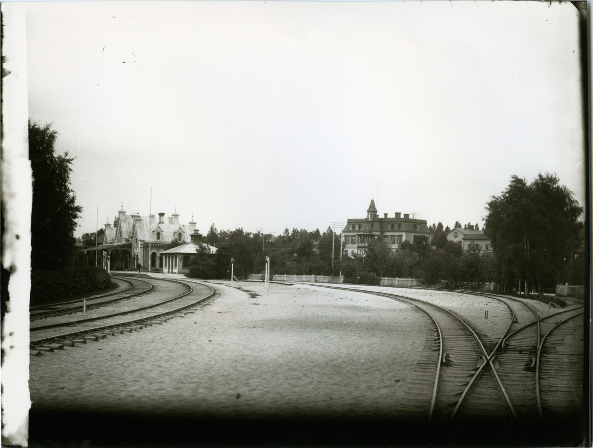 Hudiksvall station. De tre högra spåren hör till Norra - Hälsinglands Järnväg, NHJ.