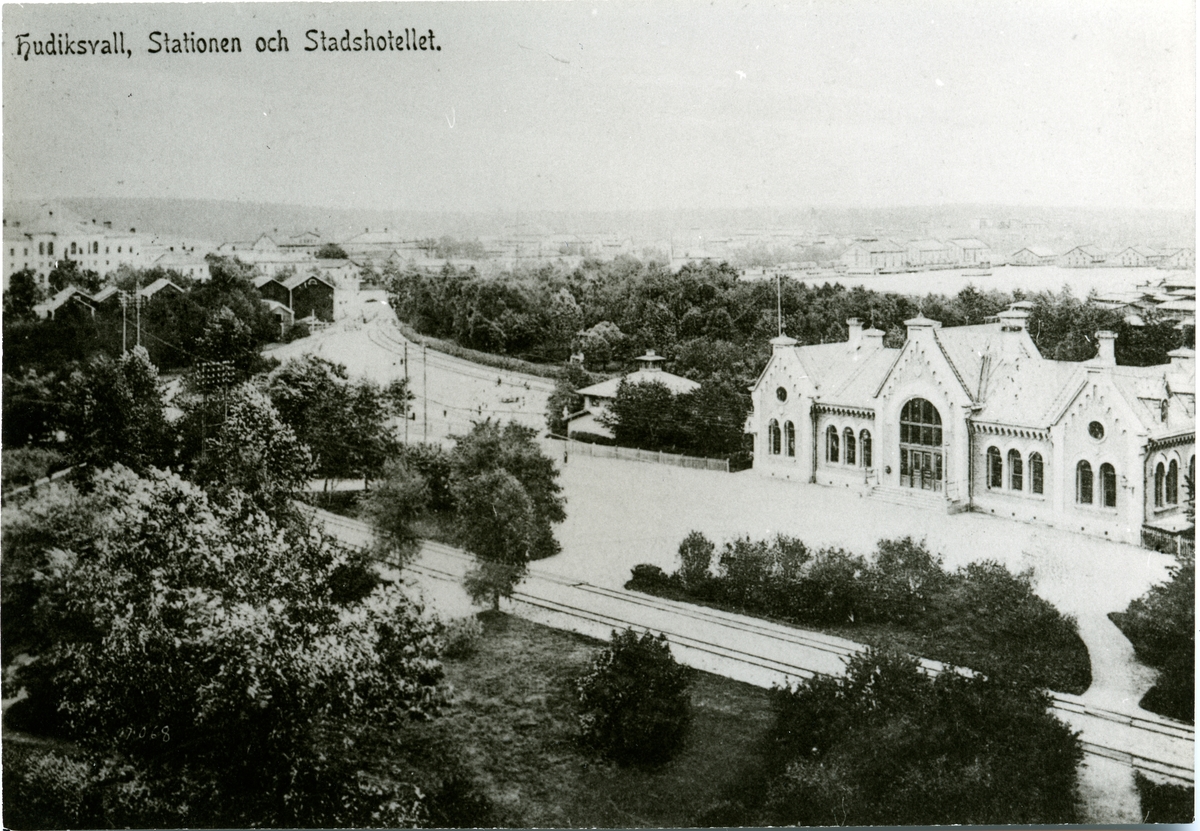 Stationshuset från gatusidan. De hitersta spåren hör till Norra - Hälsinglands Järnväg, NHJ.
