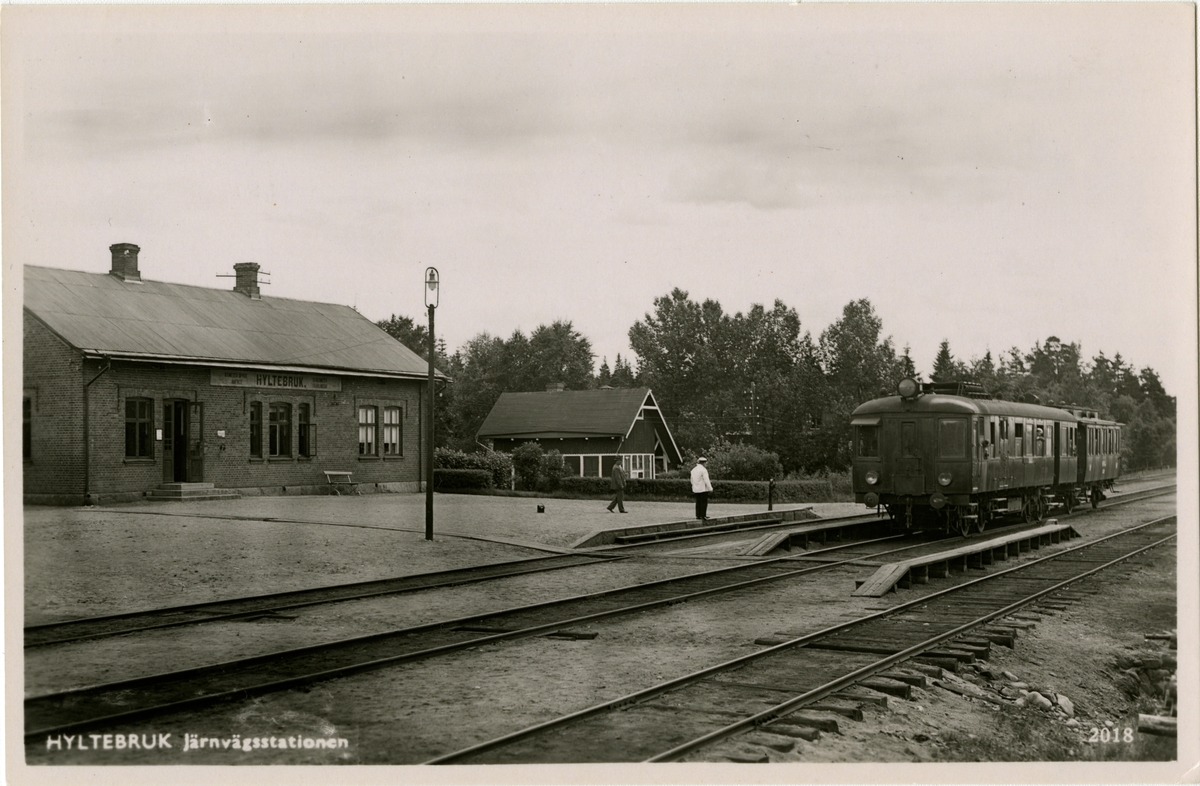 Stationen hette vid öppnandet HYLTE, men fick kort tid därefter namnet HYLTEBRUK . Stationen anlades 1905-06. Envånings stationshus i tegel. Öppnad 3.12.1909. Envånings stationshus i tegel