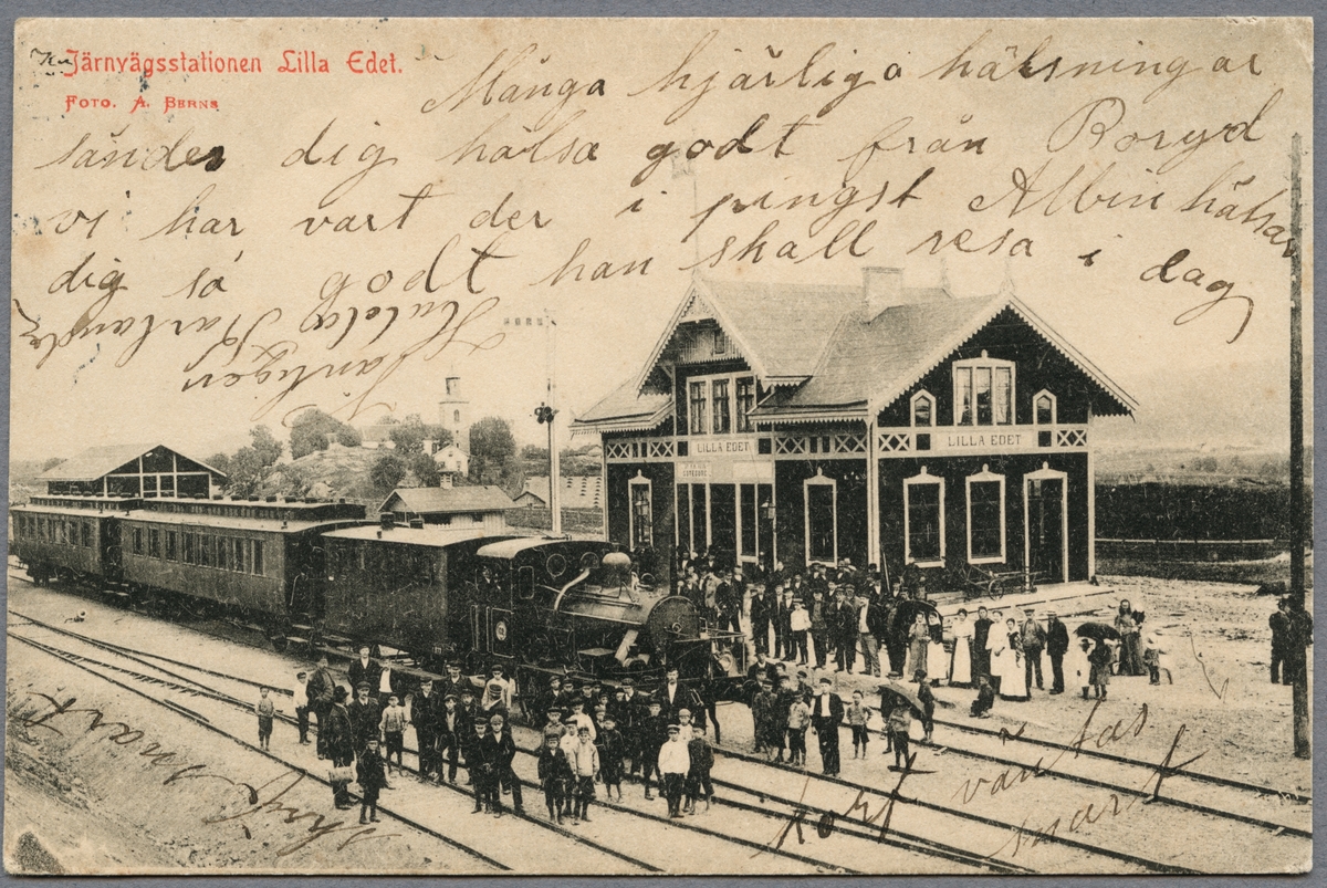Järnvägsstationen i Lilla Edet vid Lödöse - Lilla Edets Järnväg. Bergslagernas Järnvägs, BJ lok 102.