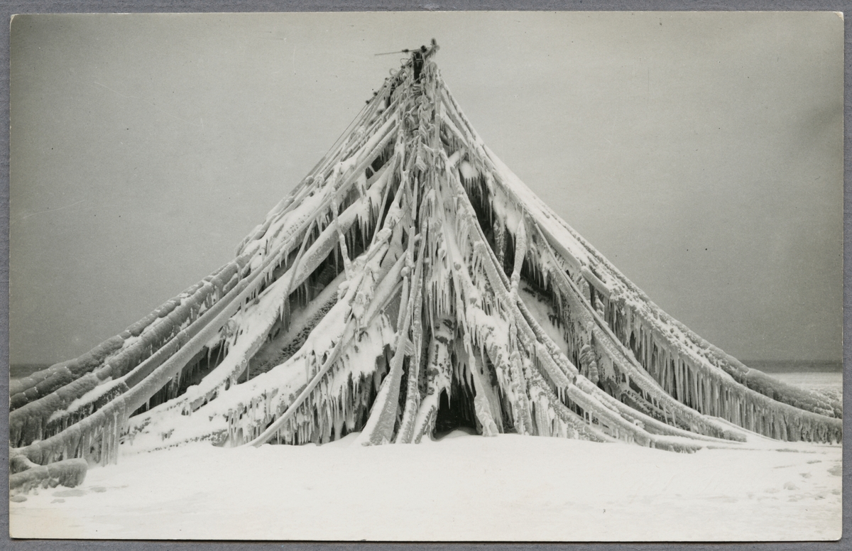 Nedisningen i Jönköping 1929, istäckt telefonlinjestolpe.