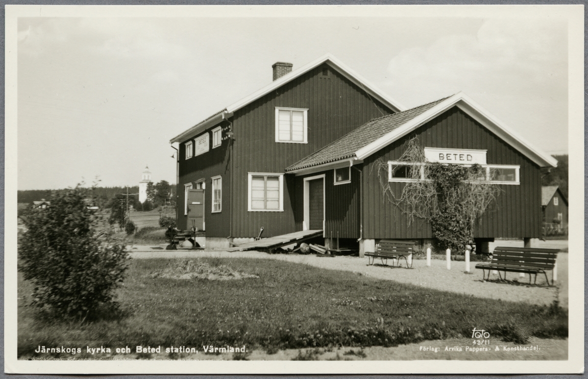 Beted station med Järnskogs kyrka i bakgrunden.