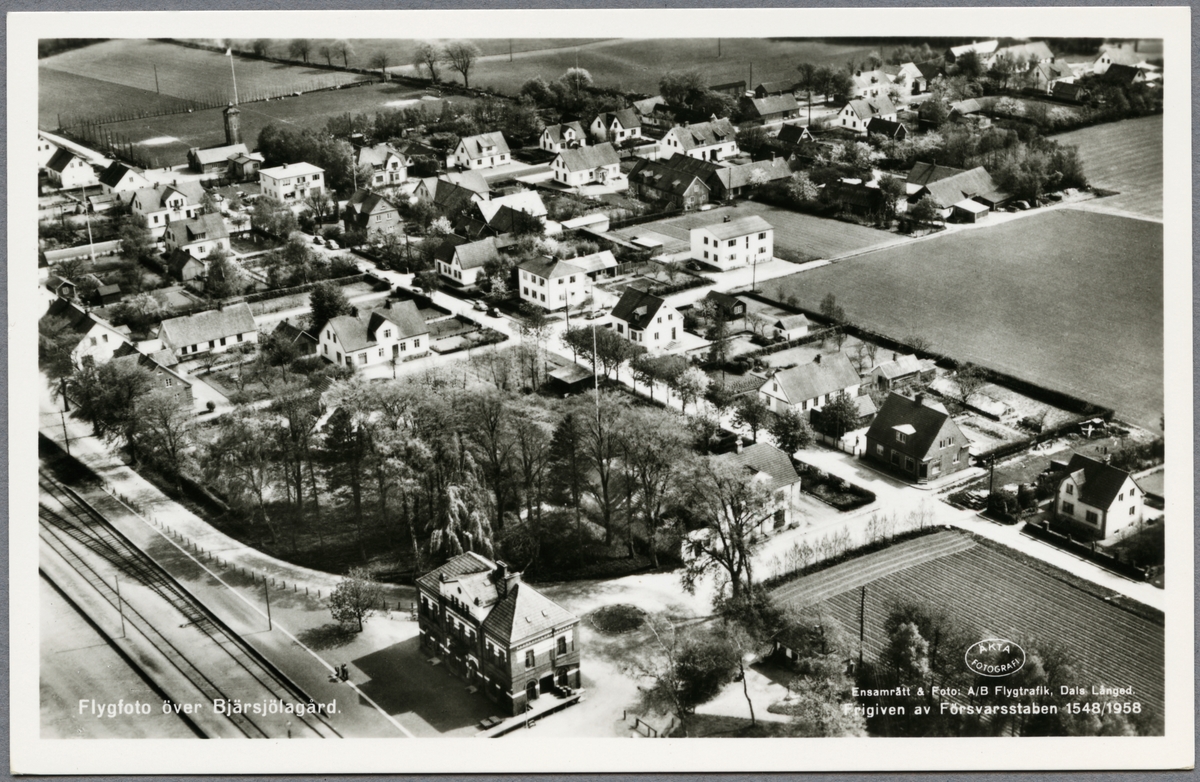 Bjärsjölagård från ovan. Stationshuset ses närmast i bild.