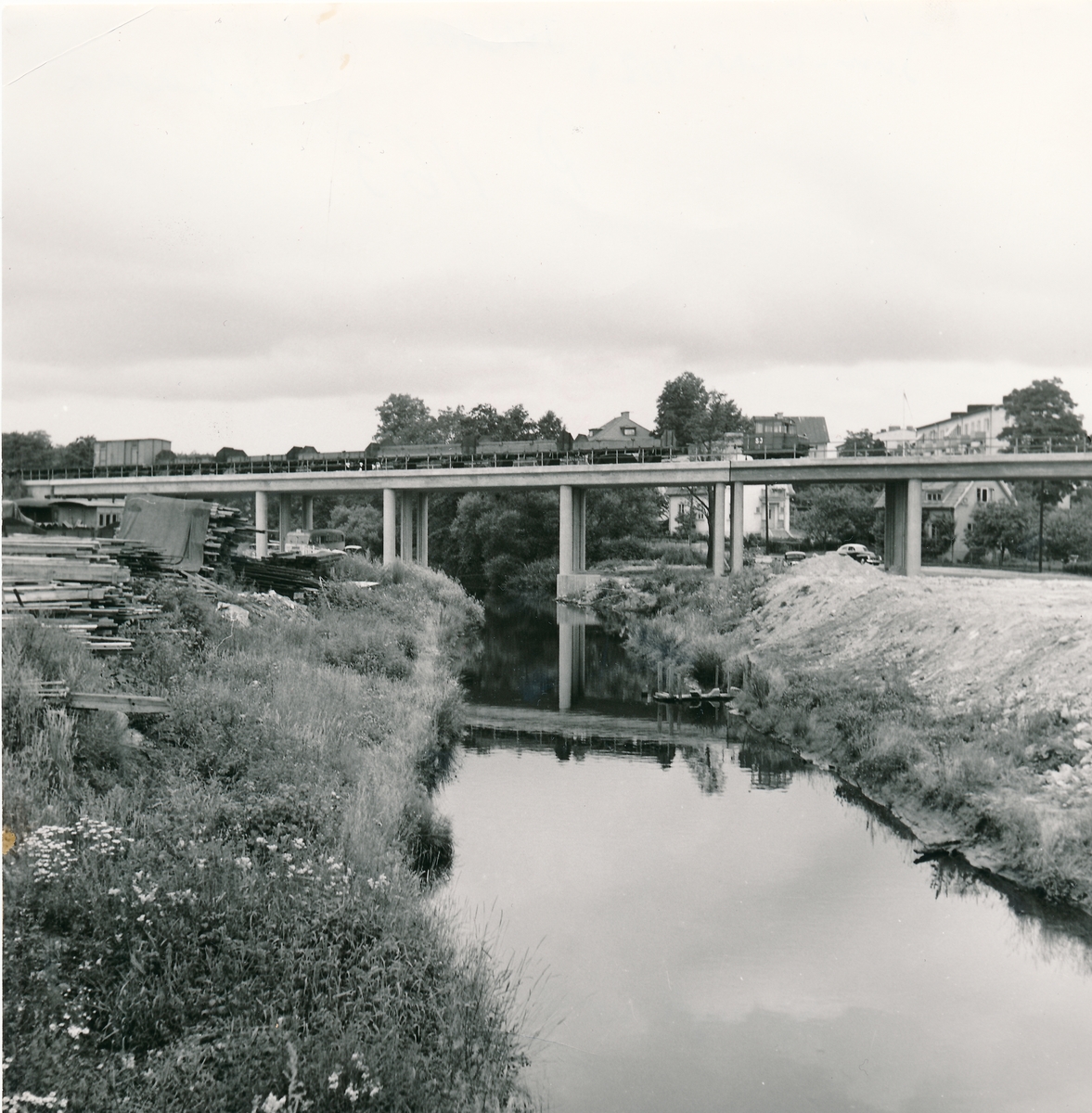 Godståg med lokomotorn vid Karlshamn Central station. Stationen kallades Karlshamn Central från det den öppnades 1957 till 27.5.1990, då den fick namnet Karlshamn.