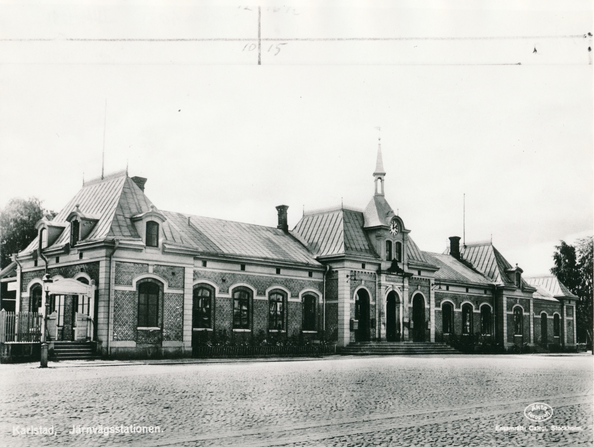 Stationshus från gatusidan. Stationen anlades i samband med tillkomsten av Nordvästra stambanan. Stationshuset ritades av arkitekten Edelsvärd. K-märkt 1986.Stationens yttre utformning har inte ändrats, men 1923, 1933 och 1943 har invändiga förändrings- och moderniseringsarbeten utförts.1920 utökades spårsystemet . Kombinerad mekanisk och elektrisk tågvägsförregling anordnades 1930.