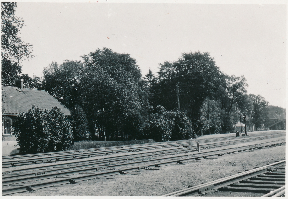 Stationen tillkom 1903 enligt överenskommelse mellan SJ, Statens Järnvägar och KMJ, Karlstad - Munkfors Järnväg. Från 1970 ingick stationen i Karlstad Central. Stationshuset rivet 1971. Vackra kastanjeträt i perrongen.