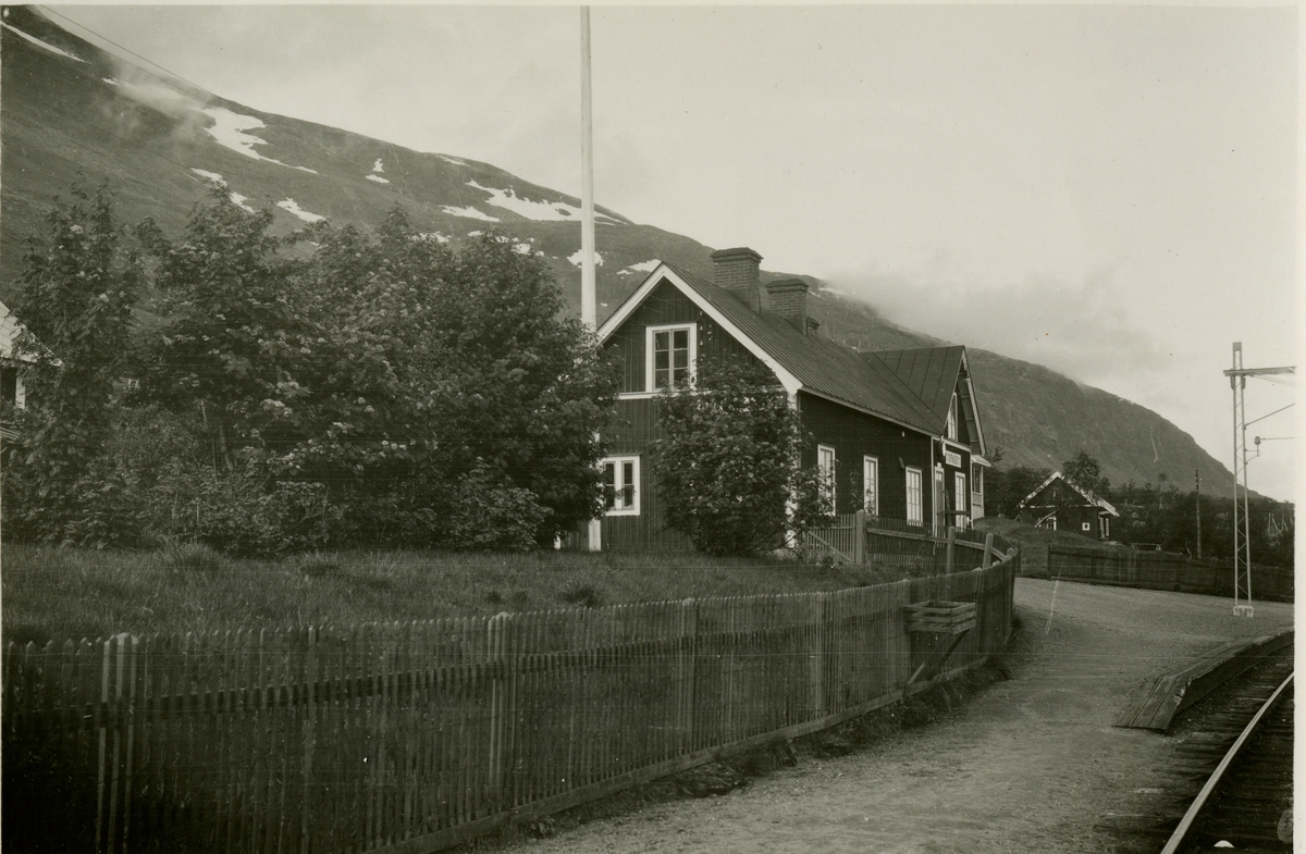 Stationen med inhägnad stationsplantering- Björk och Rönn.