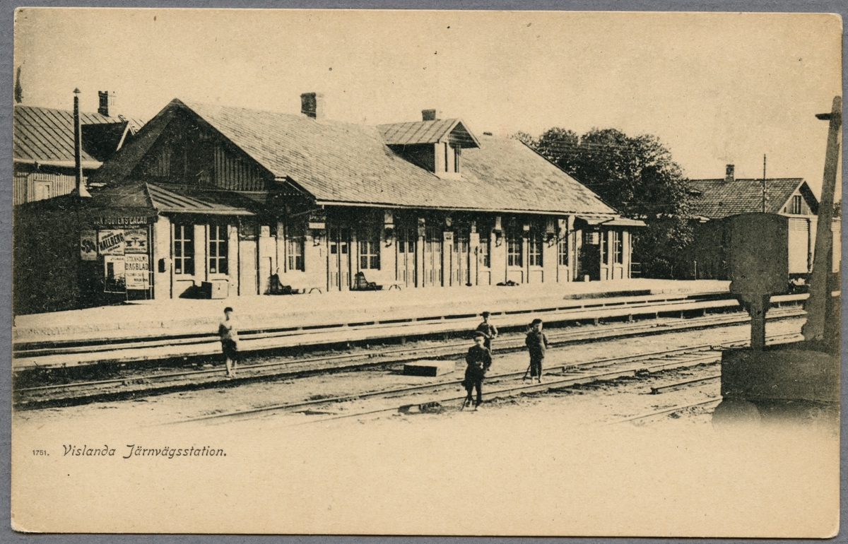 Barn på bangården vid Vislanda station.
