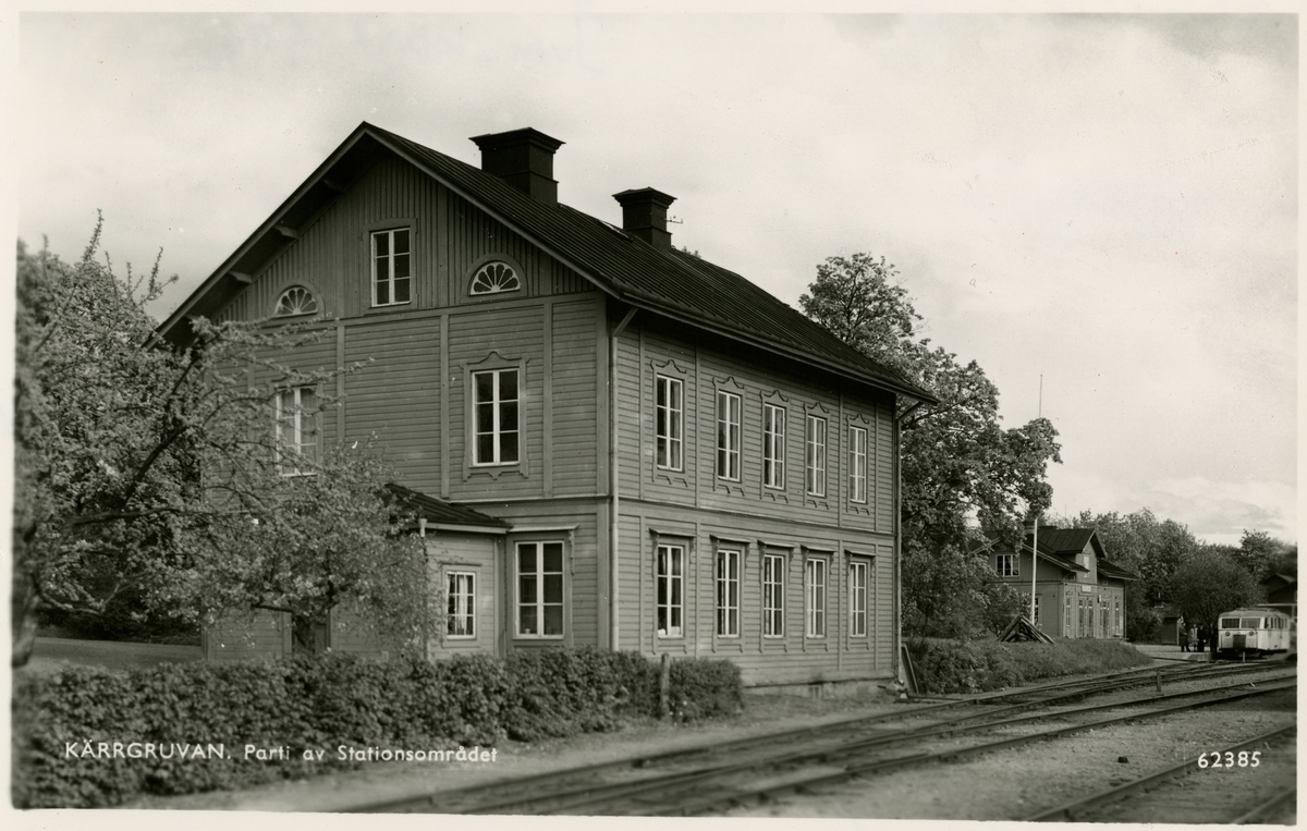Parti av stationsomtådet. Trafik platsen öppnad 1856. Det första stationshuset var en- och enhalvvånings träbyggnad.