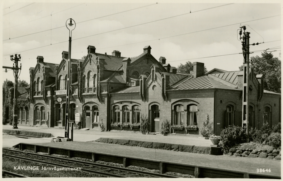 Stationen anlades 1885-86. Stationshuset byggt 1886. K-märkt 1986. Stationen ombyggd 1917. En tillbyggnad i tegel i en våning 1912, där samtliga expeditionslokaler är inrymda. 1917 uppfördes en likanande byggnad på södra sidan för postverket. Eldrift 1934.