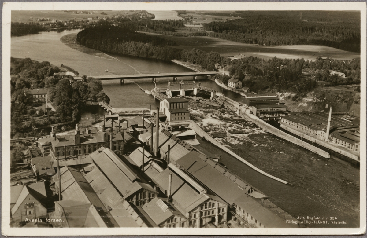 Flygfoto över Dalälven med Avesta Storfors kraftverk.